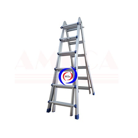 Thang nhôm gấp AMECA còn có tính năng làm giàn giáo, chỉ cần rút thang lồng bên trong thành 2 thang, sau đó để một tấm ván ở giữa 2 chân thang. Bạn sẽ có một chiếc giàn giáo sẵn sàng cho công việc.