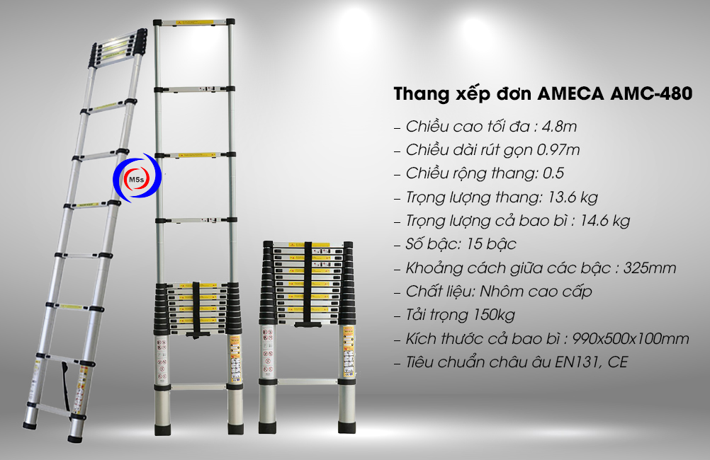 THANG NHÔM RÚT ĐƠN AMECA AMC-480 là thương hiệu thang nhôm cao cấp, sản xuất trên dây chuyền hiện đại, với nguyên vật liệu được chọn lọc kỹ lưỡng, cho ra sản phẩm thang nhôm chất lượng tốt nhất, đạt tiêu chuẩn an toàn châu Âu EN131.